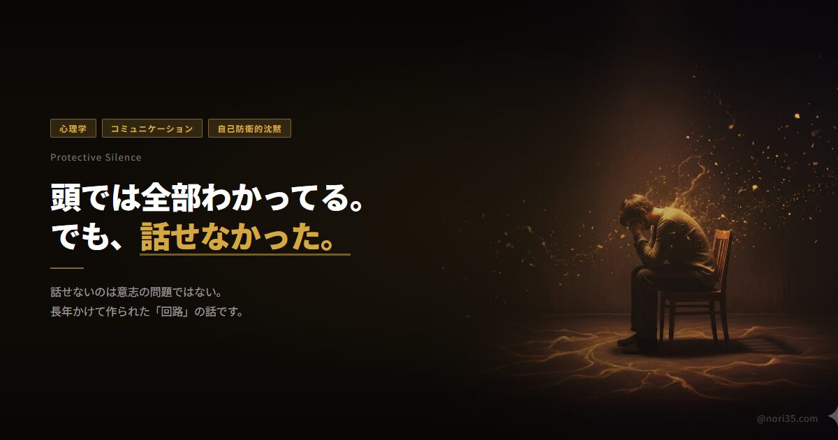 これは「自己防衛的沈黙(Protective Silence)」と呼ばれる心理パターンです。傷つくリスクを無意識に回避するために、「話さない」という選択を繰り返してしまう状態のことです。