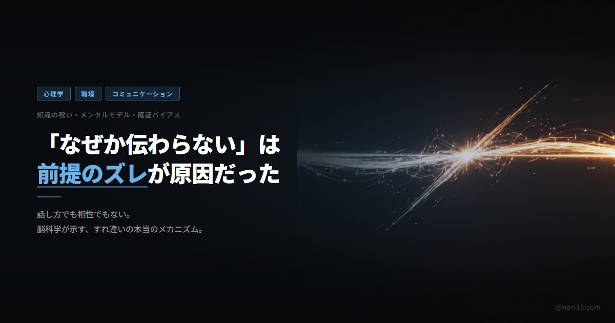 心理学・脳科学の研究が明らかにしているのは、コミュニケーションのすれ違いの根本には「前提のズレ」があるということ。そしてそれを放置すると、知らないうちに悪化していきます。